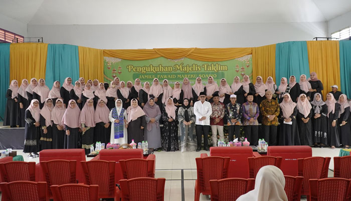 Siarmalut – Wakil Wali Kota Tidore Kepulauan Ahmad Laiman didampingi Ketua TP PKK Kota Tidore Kepulauan Hj. Rahmawati Muhammad Sinen dan Ketua I TP PKK Kota Tidore Ny. Sumiyati Ahmad Laiman menghadiri pengukuhan Majelis Ta’lim Jamiul Fawaid Mareku Soasio di Aula SMA Negeri 1 Tidore, Sabtu (17/1/2026).
