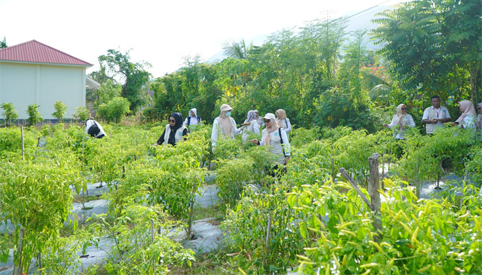 Siarmalut – Ketua TP PKK Kota Tidore Kepulauan, Hj. Rahmawati Muhammad Sinen, bersama pengurus melaksanakan panen perdana cabe di Kebun Percontohan TP PKK Kota Tidore Kepulauan, Halaman Kantor BPP Kecamatan Tidore, Kelurahan Cobodoe, Rabu (28/1/2026).